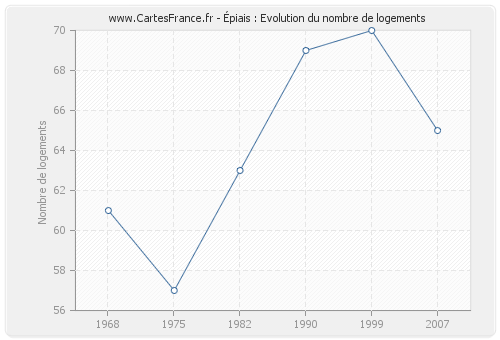 Historique du nombre de logements d'Épiais de 1968 à 2007 :