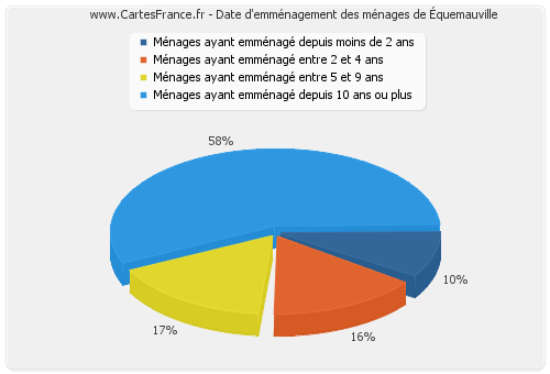 - Nombre de ménages d'Équemauville ayant emménagé depuis 10 ans ou plus : 277