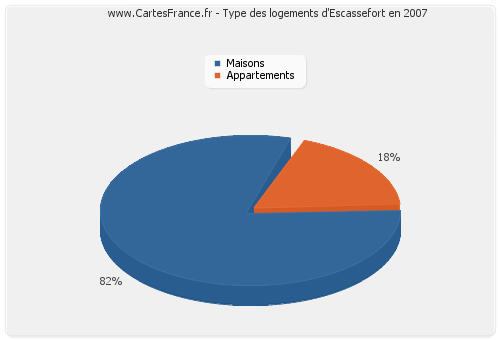 Les logements d'Escassefort étaient composées en 2007 de 222 maisons et 50 appartements.
