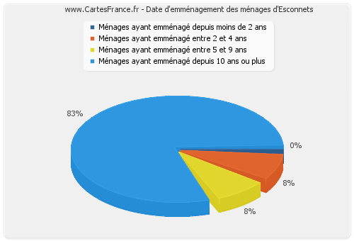 - Nombre de ménages d'Esconnets ayant emménagé depuis moins de 2 ans : 0