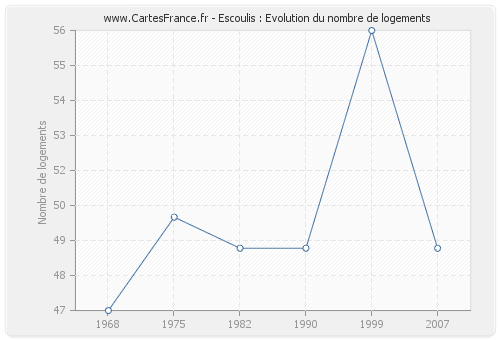 Historique du nombre de logements d'Escoulis de 1968 à 2007 :