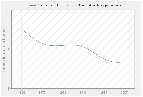 - Nombre d'habitants moyen par logement d'Esparsac en 1968 : 3,26