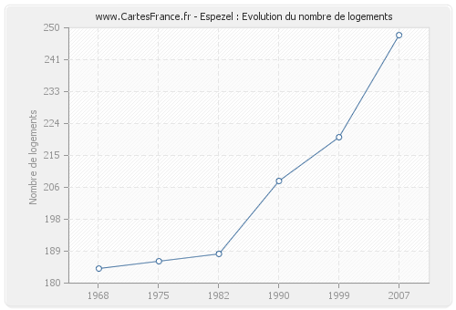 Historique du nombre de logements d'Espezel de 1968 à 2007 :