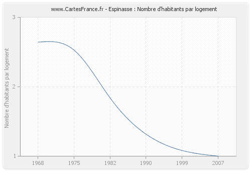 - Nombre d'habitants moyen par logement d'Espinasse en 2007 : 1,00