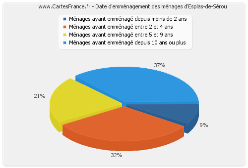 - Nombre de ménages d'Esplas-de-Sérou ayant emménagé depuis 10 ans ou plus : 28