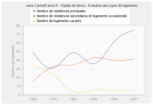 - Nombre de résidences principales d'Esplas-de-Sérou en 2007 : 75