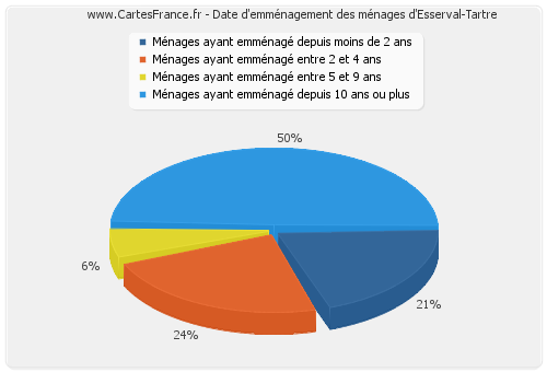 - Nombre de ménages d'Esserval-Tartre ayant emménagé depuis 10 ans ou plus : 17