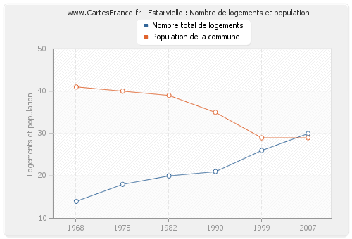 La population d'Estarvielle était de 29 habitants en 2007, 29 habitants en 1999, 35 habitants en 1990, 39 habitants en 1982, 40 habitants en 1975 et 41 habitants en 1968. Parallèlement, le nombre de logements d'Estarvielle était de 30 en 2007, 26 en 1999, 21 en 1990, 20 en 1982, 18 en 1975 et 14 en 1968.