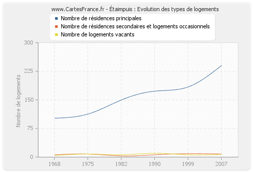 - Nombre de résidences principales d'Étaimpuis en 2007 : 240