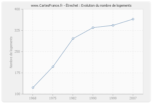 Historique du nombre de logements d'Étrechet de 1968 à 2007 :