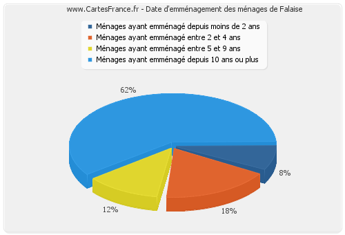 - Nombre de ménages de Falaise ayant emménagé depuis 10 ans ou plus : 90