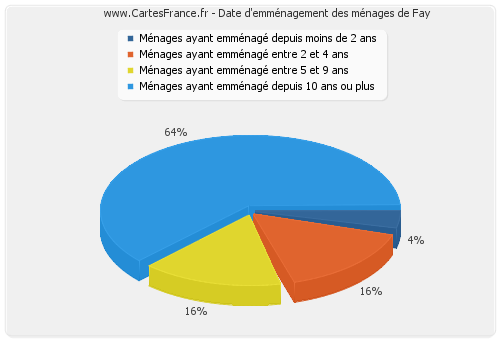 - Nombre de ménages de Fay ayant emménagé depuis 10 ans ou plus : 16