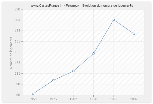 Historique du nombre de logements de Feigneux de 1968 à 2007 :