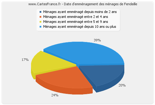 - Nombre de ménages de Fendeille ayant emménagé depuis 10 ans ou plus : 82