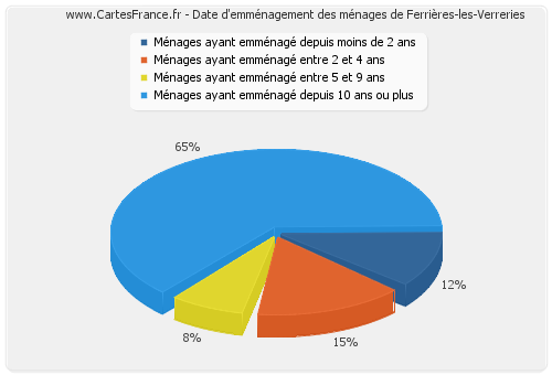 - Nombre de ménages de Ferrières-les-Verreries ayant emménagé depuis 10 ans ou plus : 17