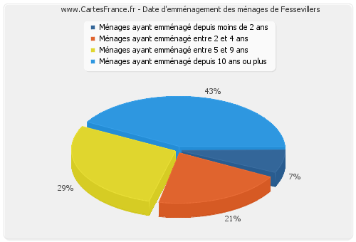 - Nombre de ménages de Fessevillers ayant emménagé depuis 10 ans ou plus : 29