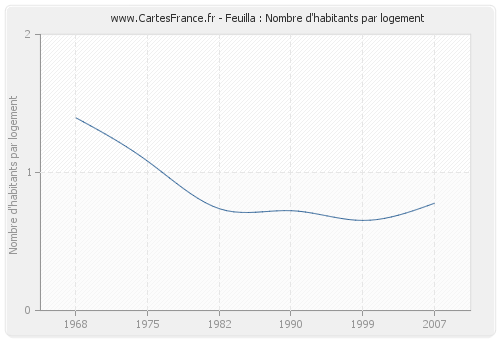 - Nombre d'habitants moyen par logement de Feuilla en 1968 : 1,39