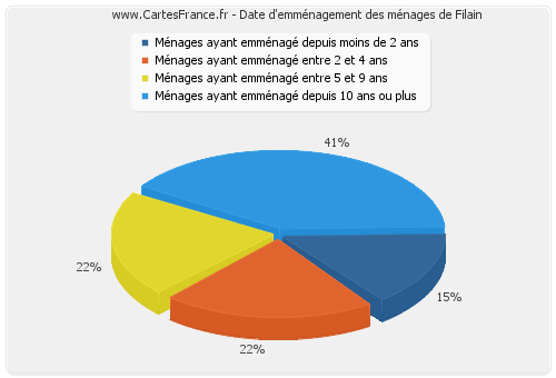 - Nombre de ménages de Filain ayant emménagé depuis 10 ans ou plus : 19