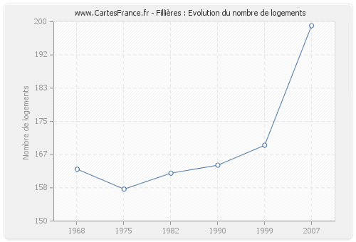 Le nombre de logements de Fillières était de 199 en 2007, 169 en 1999, 164 en 1990, 162 en 1982, 158 en 1975 et 163 en 1968.
