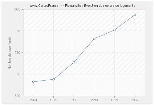 Le nombre de logements de Flamanville était de 969 en 2007, 881 en 1999, 831 en 1990, 694 en 1982, 596 en 1975 et 582 en 1968.