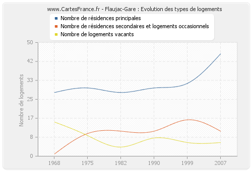 Historique du nombre de logements de Flaujac-Gare de 1968 à 2007 :