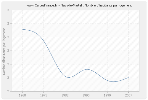 - Nombre d'habitants moyen par logement de Flavy-le-Martel en 1968 : 2,86