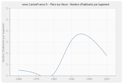 - Nombre d'habitants moyen par logement de Flers-sur-Noye en 1999 : 2,74