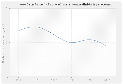 - Nombre d'habitants moyen par logement de Flogny-la-Chapelle en 2007 : 1,90