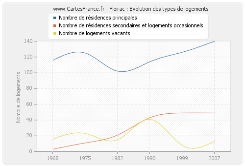 En 2007 les logements de Floirac étaient composés de 140 résidences principales, 49 résidences secondaires ou occasionnels ainsi que 13 logements vacants.