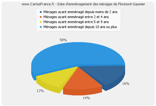 - Nombre de ménages de Florimont-Gaumier ayant emménagé entre 2 et 4 ans : 10