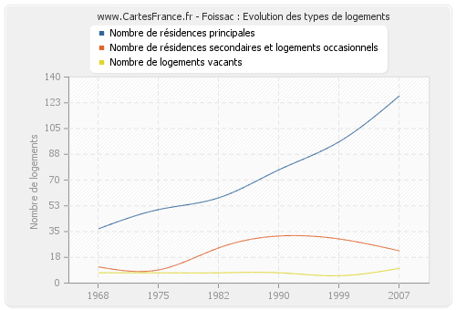 En 2007 les logements de Foissac étaient composés de 127 résidences principales, 22 résidences secondaires ou occasionnels ainsi que 10 logements vacants.