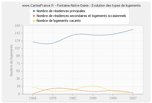 - Nombre de résidences principales de Fontaine-Notre-Dame en 2007 : 151