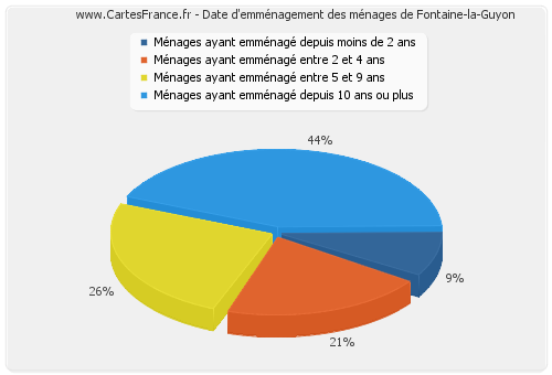 - Nombre de ménages de Fontaine-la-Guyon ayant emménagé depuis moins de 2 ans : 43