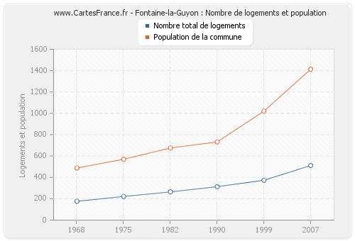 Historique du nombre de logements de Fontaine-la-Guyon de 1968 à 2007 :