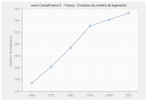 Historique du nombre de logements de Fossoy de 1968 à 2007 :