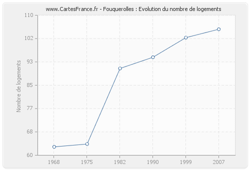 Le nombre de logements de Fouquerolles était de 105 en 2007, 102 en 1999, 95 en 1990, 91 en 1982, 64 en 1975 et 63 en 1968.