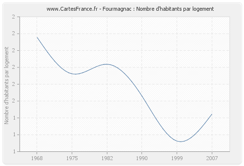 - Nombre d'habitants moyen par logement de Fourmagnac en 1999 : 1,26