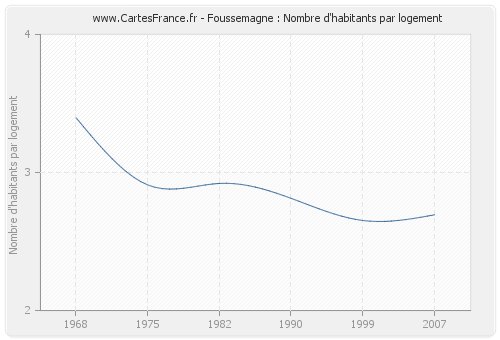 - Nombre d'habitants moyen par logement de Foussemagne en 2007 : 2,69