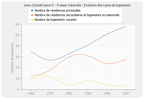 - Nombre de résidences principales de Fraisse-Cabardès en 2007 : 58