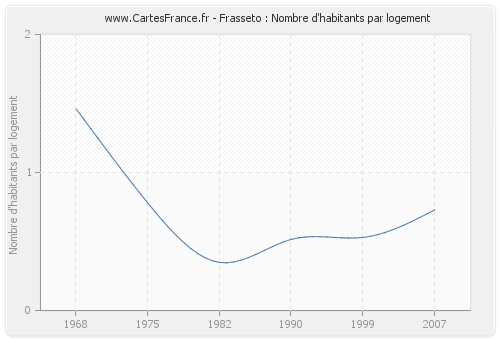 - Nombre d'habitants moyen par logement de Frasseto en 2007 : 0,73