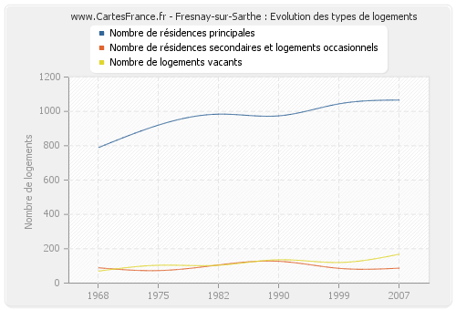 Evolution des logements de Fresnay-sur-Sarthe de 1968 à 2007