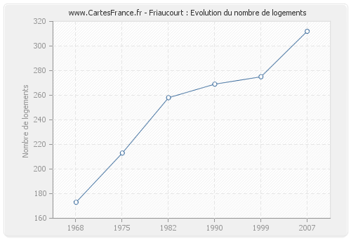 Historique du nombre de logements de Friaucourt de 1968 à 2007 :