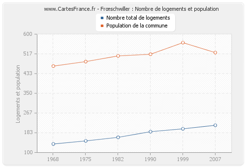 Historique du nombre de logements de Frœschwiller de 1968 à 2007 :