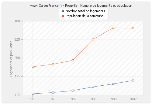 La population de Frouville était de 372 habitants en 2007, 373 habitants en 1999, 326 habitants en 1990, 241 habitants en 1982, 225 habitants en 1975 et 215 habitants en 1968. Parallèlement, le nombre de logements de Frouville était de 159 en 2007, 145 en 1999, 133 en 1990, 118 en 1982, 110 en 1975 et 105 en 1968.