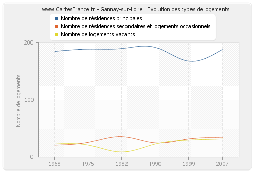 Historique du nombre de logements de Gannay-sur-Loire de 1968 à 2007 :