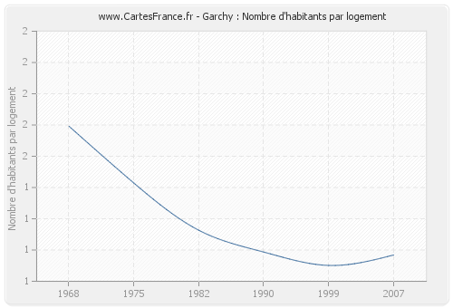 - Nombre d'habitants moyen par logement de Garchy en 2007 : 1,19