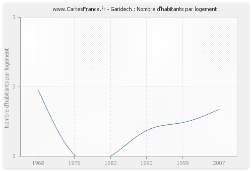 - Nombre d'habitants moyen par logement de Garidech en 2007 : 2,73