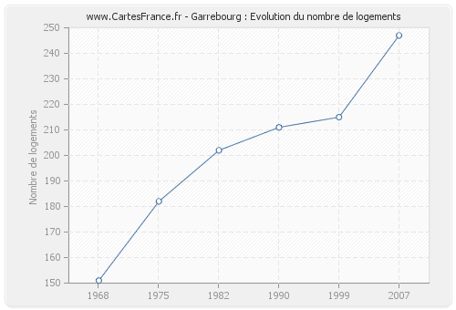 Historique du nombre de logements de Garrebourg de 1968 à 2007 :