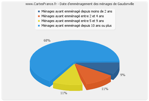- Nombre de ménages de Gaudonville ayant emménagé depuis 10 ans ou plus : 30