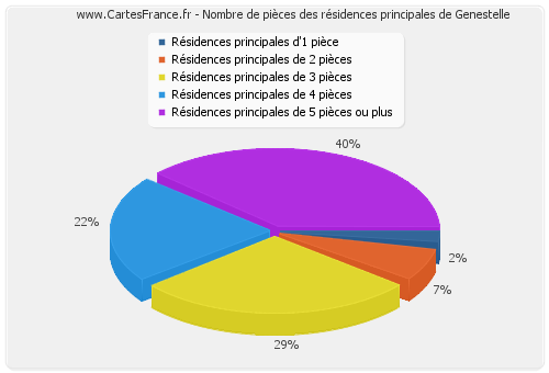 - Nombre de résidences principales de Genestelle de cinq pièces et plus : 53